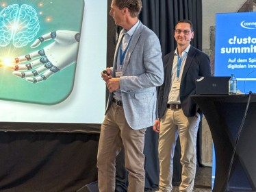 Lars Rensinghoff und Jeremias Antoniadis (connectiv! eSolutions) forderten zum Mitdenken auf. In ihrer Impulsvortrag „Wir denken KI – Denken Sie mit!“ ging es nicht um fertige Antworten, sondern um die richtigen Fragen: Was wünschen sich Kund:innen von KI? Wo beginnt Verantwortung? Wie gestalten wir den Einsatz gemeinsam sinnvoll und menschlich?